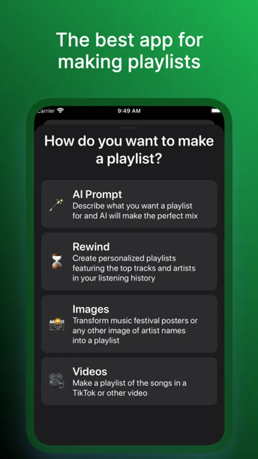 - Enter a prompt like "Early 2000's pop music", "Working out at the gym, rap", or "Music similar to Taylor Swift and Joji" and we'll make you a playlist using AI.