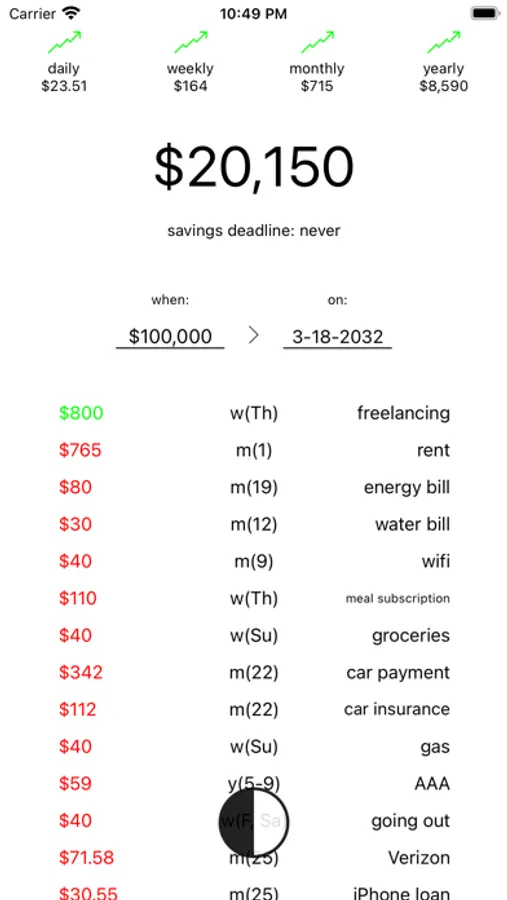 Step into the control room of your finances with greenHat. Picture a wall of dials representing your expenses and income. With a turn of a dial, your expenses and income adjust, and you watch as greenHat shows you in real-time the impact on your financial future. This is the greenHat effect. No more guesswork, no more stress - greenHat is a budget simulation app that empowers you to discover the best budget solution for your financial goals. Take charge of your finances and live your best life with greenHat.