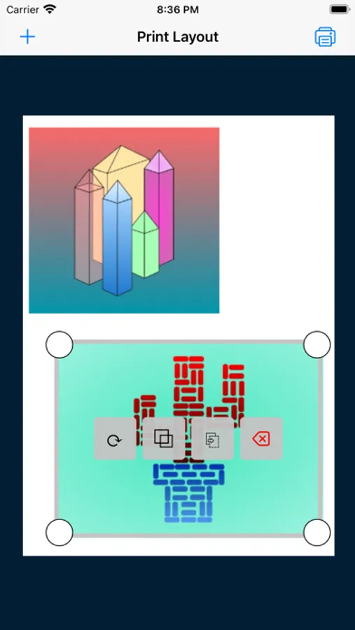 This app allows you to easily resize and position images on a sheet of A4 paper, before being printed. This is useful for situations where you need to print an image a certain size, and you may have to take the image into a much larger word/image processor, just to make a small change. The main focus with this app is to be fast and efficient to print 1 or more images on the same paper quickly.