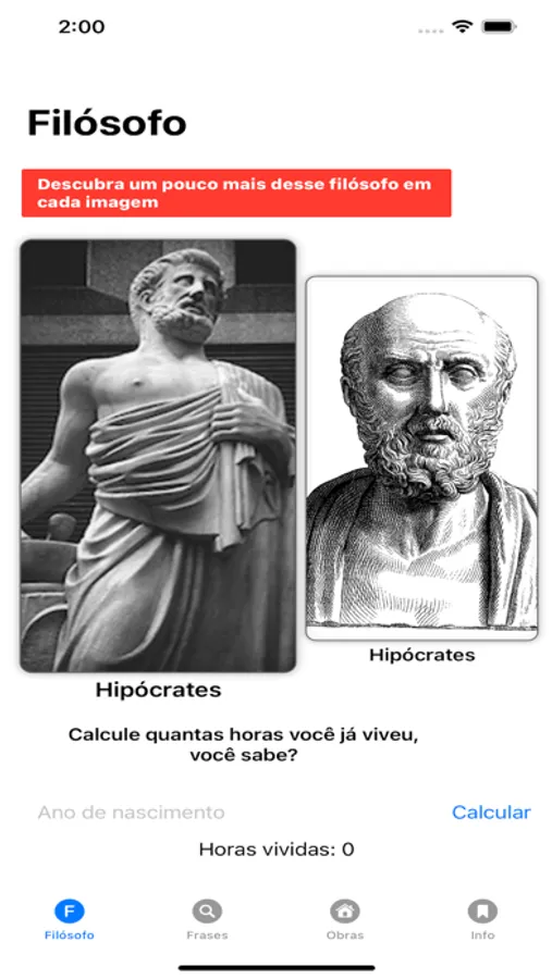 Aplicativo para você saber mais sobre o Filósofo Hipócrates.