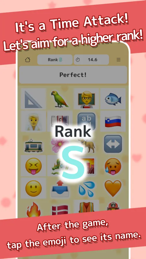 Have you ever heard of each emojis having their name? In this game, you look at the name of emojis, then tap the emoji.