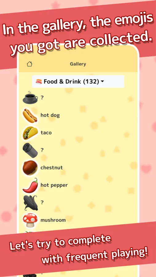 In the gallery, you can find the emojis you answered correctly. Let's try to complete!