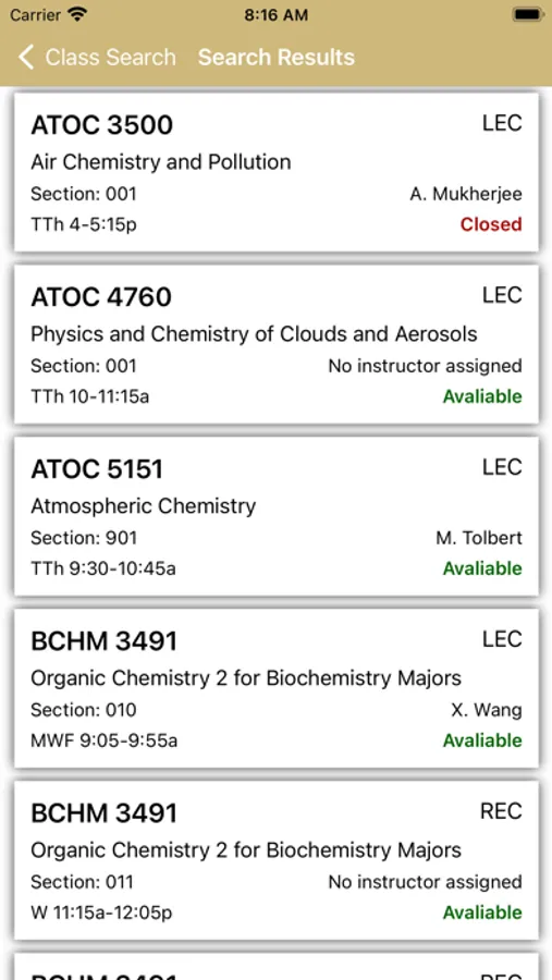 Quickly and easily search up to date CU Boulder class information. Features include adding a class to favorites, having links to class and professor ratings, and light/dark theme.
