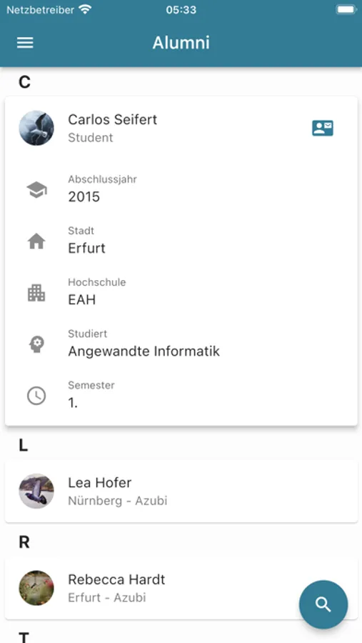 - Suche als Alumni in dem Netzwerk aller Ehemaligen oder als Schüler/-in in dem Netzwerk aller Nutzer/-innen nach bestimmten Personen