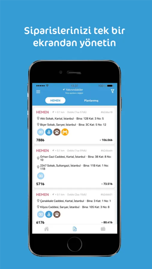 Taşımacım Sürücü Uygulaması, daha fazla para kazanmak için sürücülerin günde binlerce teslimat ve kurye siparişine erişmesine yardımcı olur. Sürücümüz olmak ister misiniz? Sadece uygulamayı indirin ve kaydolun. Doğrulama sürecini geçtikten sonra, istediğiniz zaman seçtiğiniz filtrelere uygun siparişi anında seçebilir, ek gelir elde edebilirsiniz.