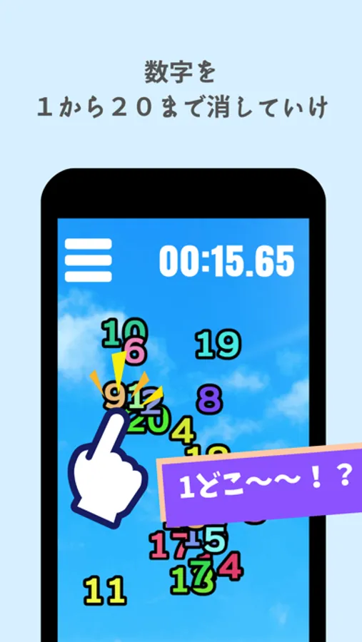 タッチ操作のみで子供でもできる簡単なタイムアタック型ゲームです。家族でどうぞ。