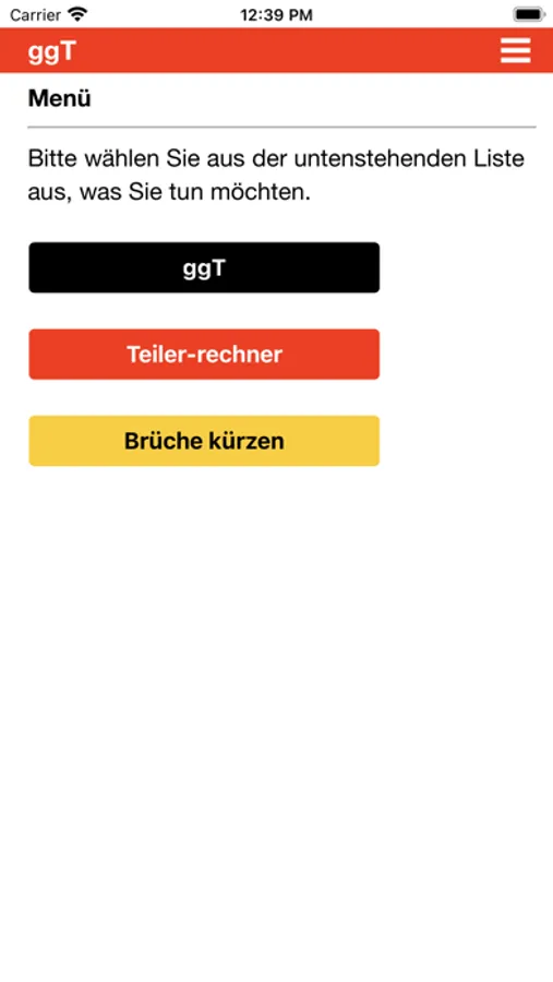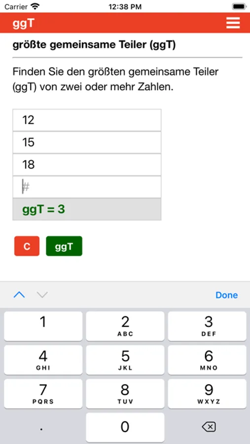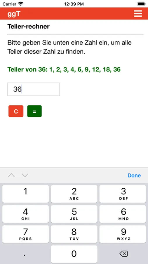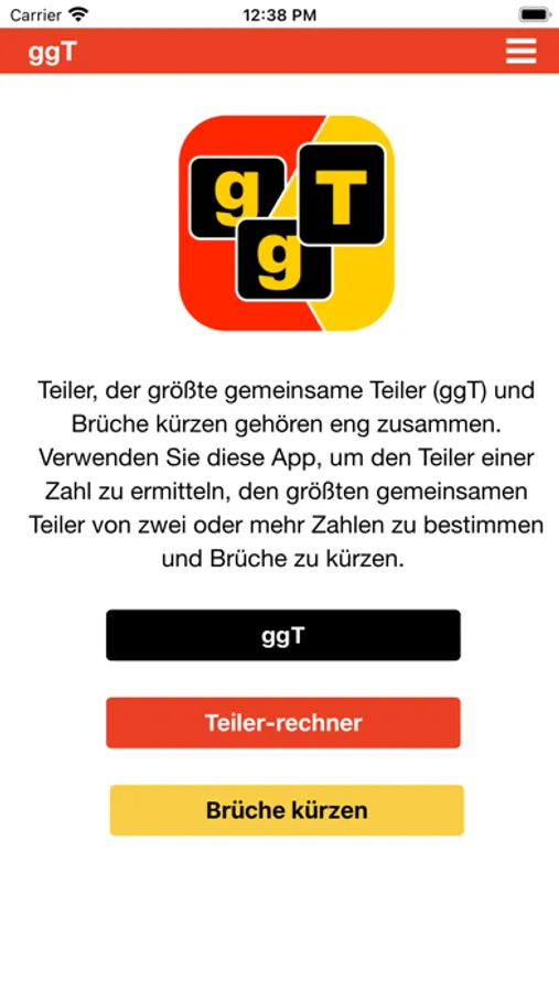 Teiler, der größte gemeinsame Teiler (ggT) und Brüche kürzen gehören eng zusammen. Verwenden Sie diese App, um den Teiler einer Zahl zu ermitteln, den größten gemeinsamen Teiler von zwei oder mehr Zahlen zu bestimmen und Brüche zu kürzen.