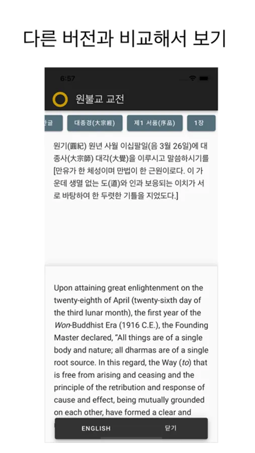 다양한 버전의 원불교 교전을 보다 편리하고 빠르게 비교하며 읽고 검색할 수 있습니다.