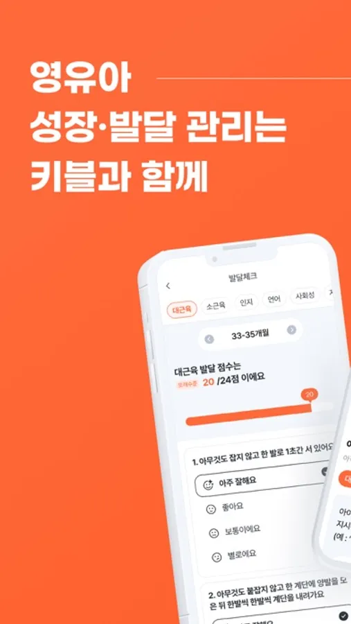 "우리 아이 발달이 걱정되는 영유아 부모님이라면, 키블이 도와드릴게요. 아이의 발달과 성장을 기록하며 발달지연 여부를 체크하고, 무료로 전문가와 상담할 수 있어요.