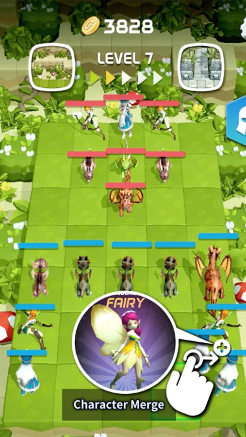 Merge heroes & dragons from the battlefield to upgrade their ATK/HP.