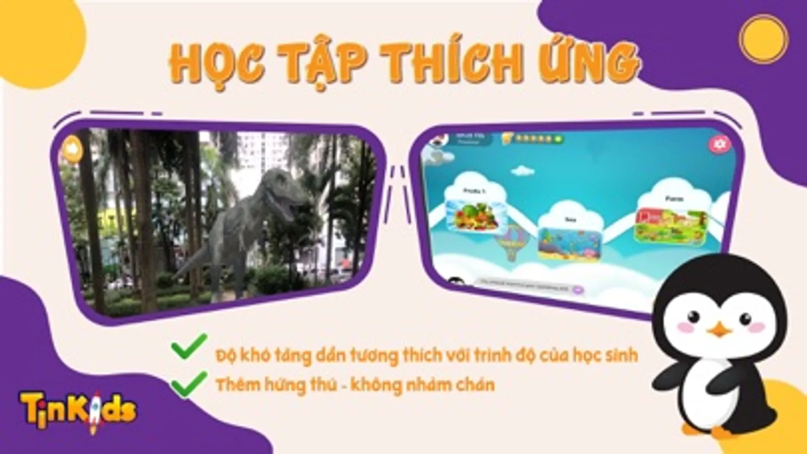 Với hơn 5000 trò chơi theo đúng phương pháp giáo dục, công nghệ thực tế ảo (VR, AR), trí tuệ nhân tạo (AI), TinKids không chỉ mang đến những giây phút giải trí lành mạnh mà còn giúp học sinh nâng cao điểm số trên lớp một cách hứng khởi nhất.
