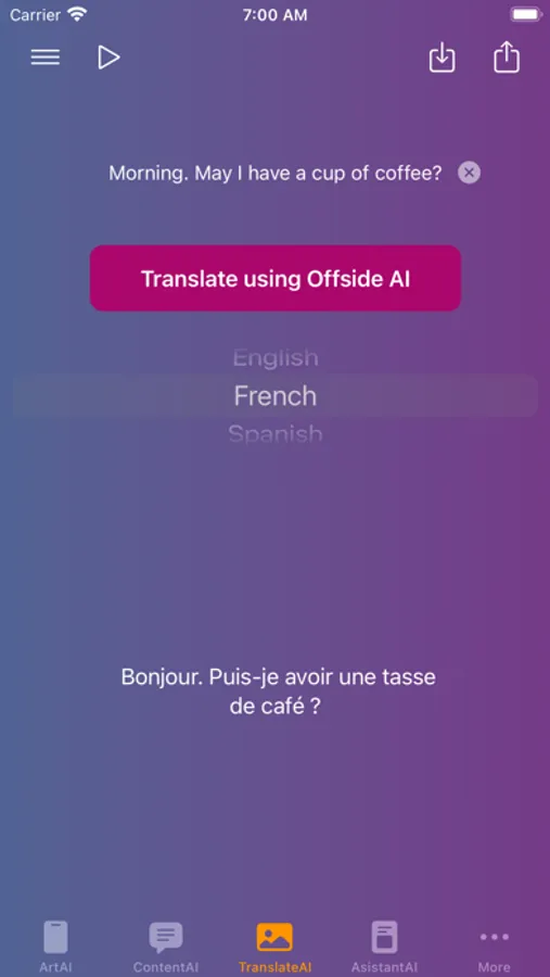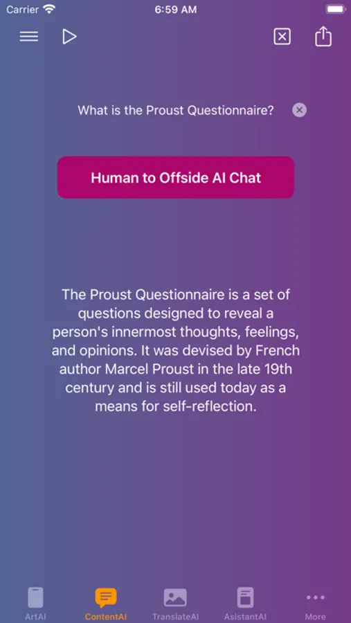 OffsideAI is an AI Business Workflow Automation tool for professionals that harnesses the latest advances in artificial intelligence to help you streamline your content creation and social media marketing tasks. With just a few simple inputs, OffsideAI generates high-quality written content, ranging from blog posts and social media posts and website content to blog articles and more. When combined with the built-in image generator, OffsideAI has everything one needs to create a professional online presence and automate one's workflows. Save time and effort by letting OffsideAI handle the heavy lifting. Automate and revolutionize your workflows with OffsideAI. By using this app, user consents to agree to terms of use (EULA) at https://www.appliaison.com/terms and privacy policy at https://www.appliaison.com/privacy.