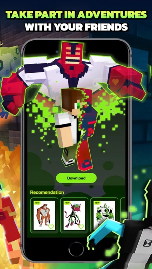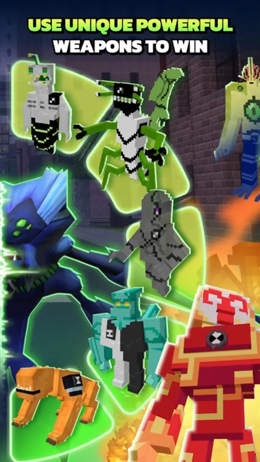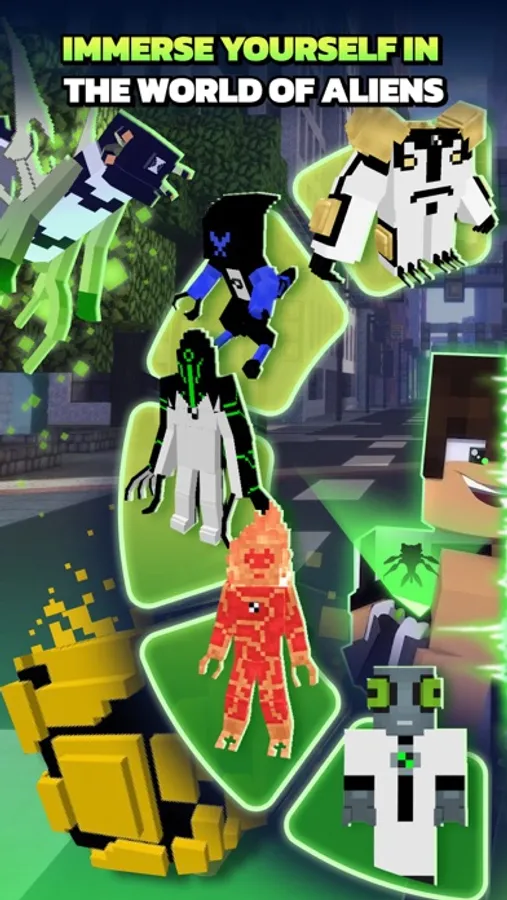 The app allows you to construct buildings from emerald blocks or summon the Omnitrix. Reincarnate as a variety of aliens to take part in battles with bloodthirsty monsters and dastardly villains operating across the vast expanses of the endless universe.