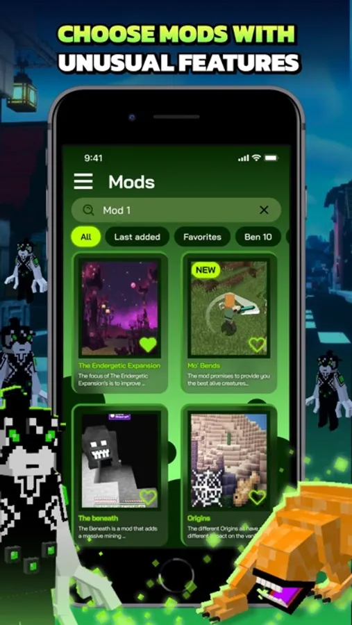 Ben Mods & Skins for Minecraft - is an application with hundreds of mods, skins and maps for true fans of the animated series "Ben 10". Get a superhero and his friends with our mods and supplements, get the super powers and weapons of a popular hero.