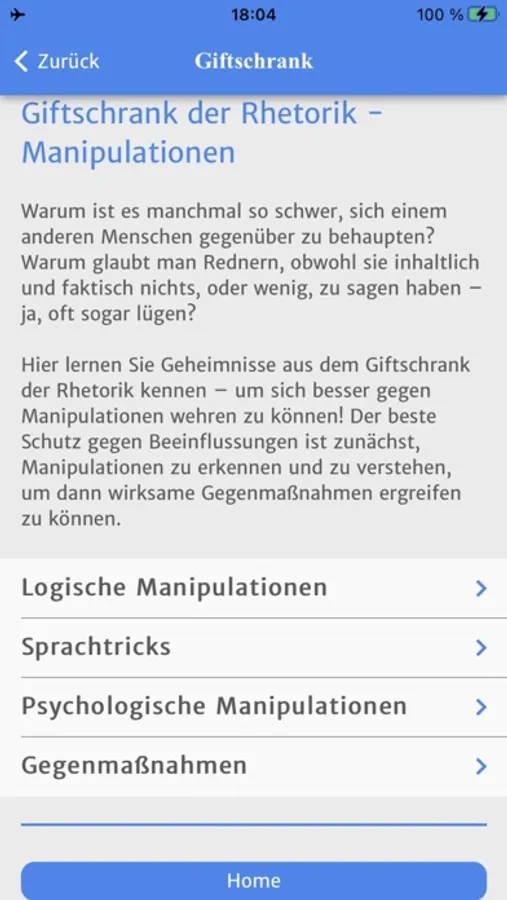Abgerundet wird das Angebot durch Informationen über den „Giftschrank der Rhetorik“, sprich Manipulationen. Außerdem bekommen Sie einen umfangreichen Überblick über die rhetorischen Stilmittel und die Geschichte der Rhetorik.