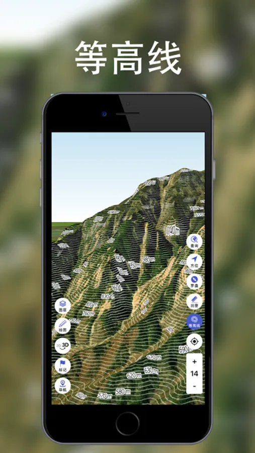 4、各种地图工具,距离测量,面积测量,等高线等功能。