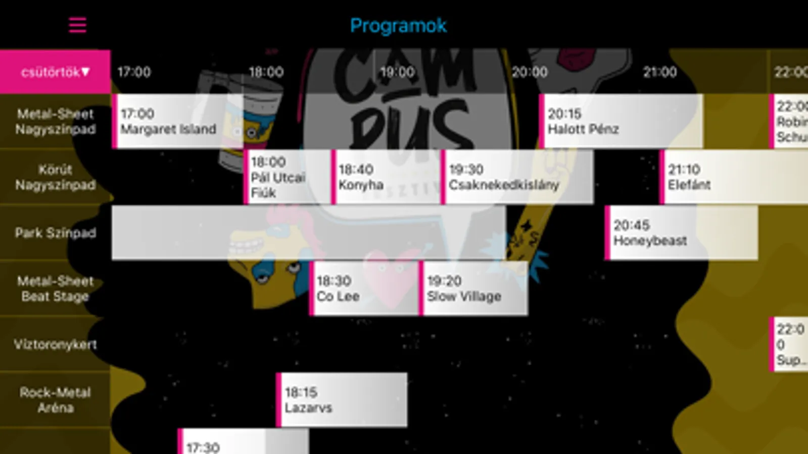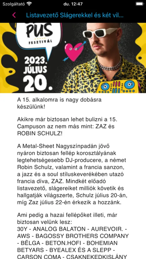 Töltsd le a debreceni Campus Fesztivál 2023 hivatalos mobil alkalmazást a telefonodra. Programok, hírek, fellépők listája, jegyvásárlás és számos hasznos, online funkció elérhetõ a legfrissebb applikációval. Jó szórakozást kívánunk a rendezvényhez!