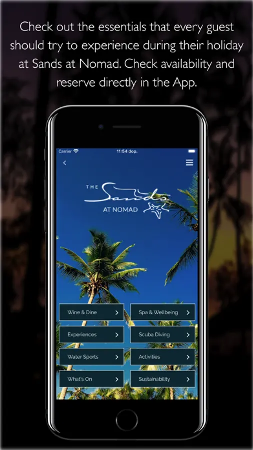 Explore Nomad Beach Resort and its stunning facilities, plan your visit and activities from your device before and during your visit. Use this app to start planning your stay, and ensure you don’t miss-out on any of the incredible experiences on offer at Nomad Beach Resort. Contactless check-in can be done before your arrival at your convenience. During your stay the app provides the perfect travel companion, showing what’s on, providing you with fantastic inspiration from the recommended bucket list experiences which you can book directly from the app. Your itinerary is always accessible to see what adventures you have planned.