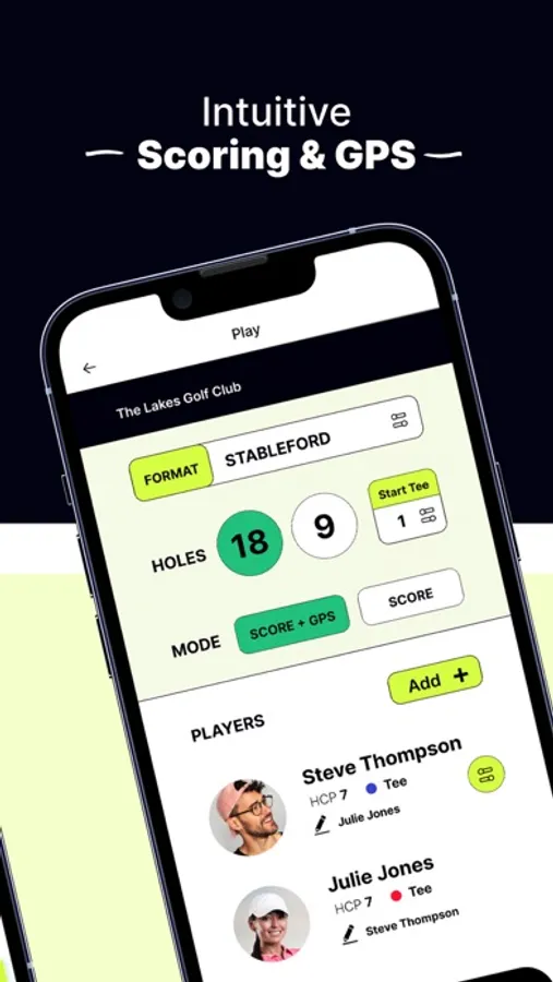 * Scoring - Intuitive scoring for competition and social golf; score for you and your partner.