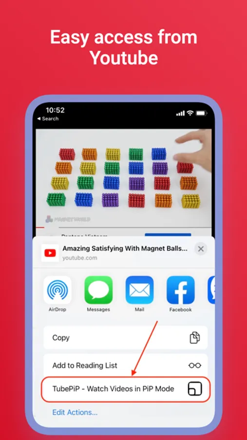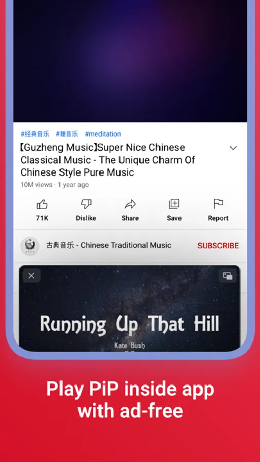 Music Video Player with PiP is called TubePiP allows users play videos picture in picture while doing other tasks and not interfering by video ads.