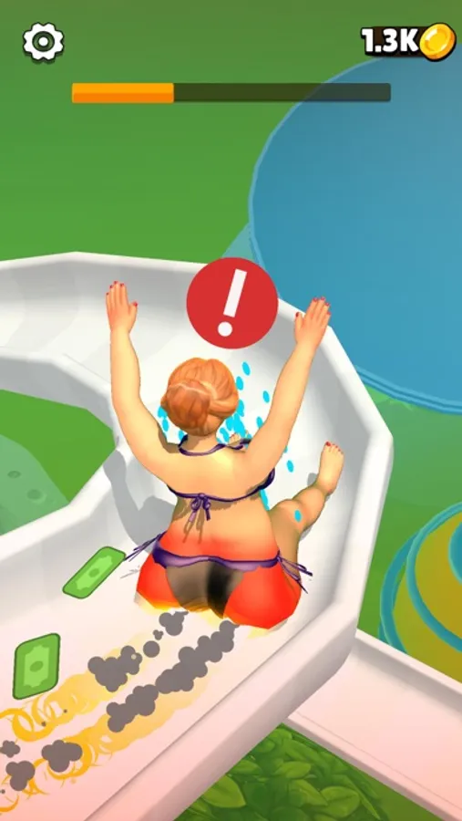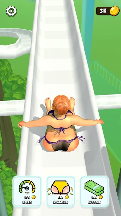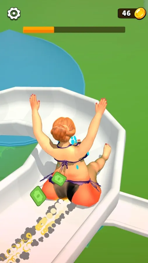 Welcome to Slide Down. Hold down your finger to slide down the slide. Keep upgrading your bum strength with the money earned from each round so as to reach the end of the slide safely. Have fun!
