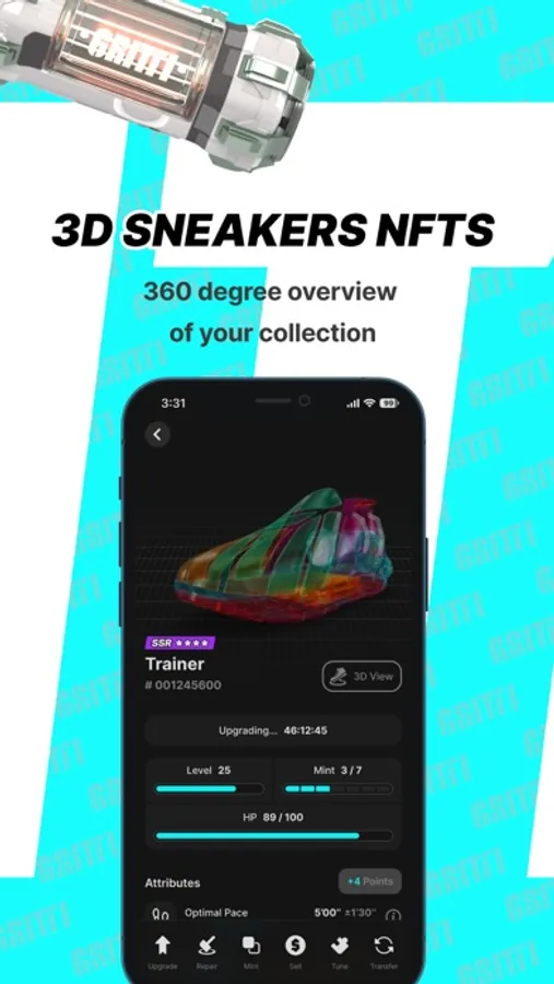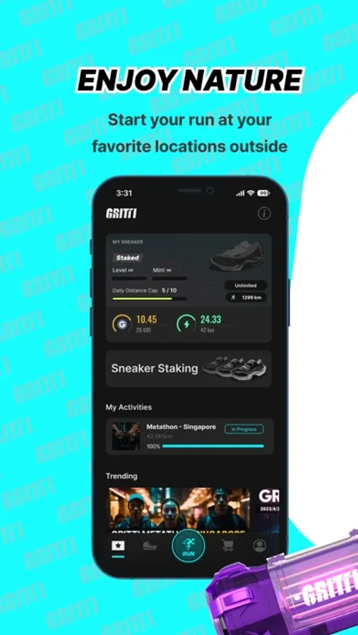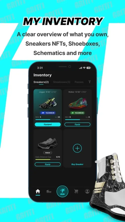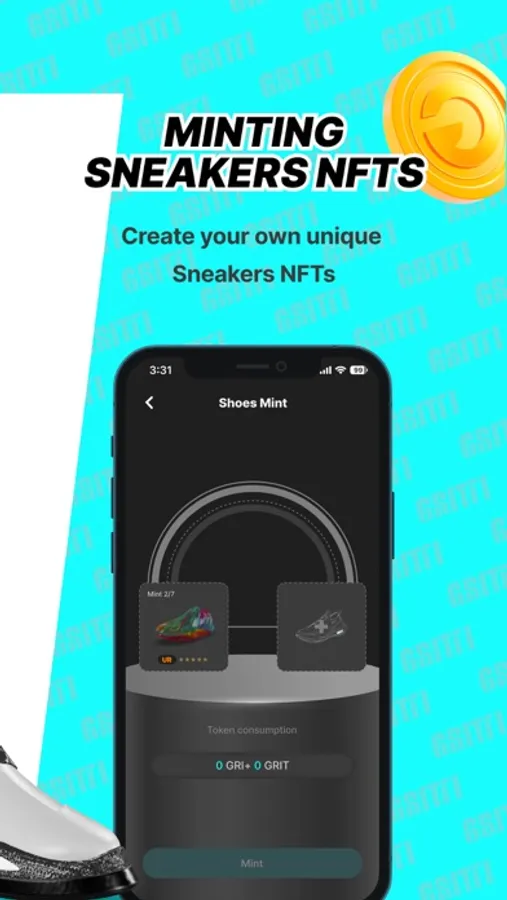 - Equip your Sneaker NFT and begin running to earn in-app token rewards GRI