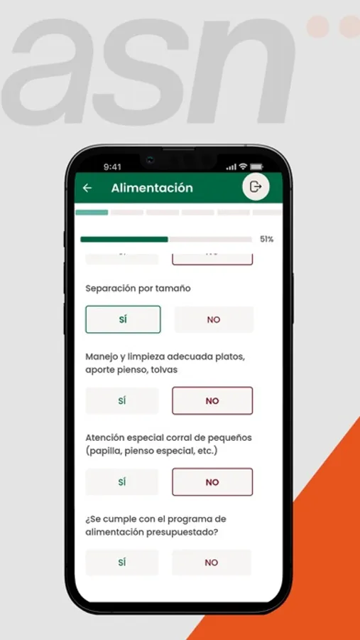 ASN ha desarrollado esta aplicación móvil, para controlar la correcta aplicación de sus sistemas en las explotaciones ganaderas. El desarrollo permite a los usuarios hacer checklists de una explotación pudiendo valorar ámbitos como la Alimentación, Instalaciones, Sanidad, Agua, Bioseguridad y aspectos Generales. De esta forma vemos con el proceso continuado de uso como es la evolución en la implantación de los protocolos de la empresa ASN.