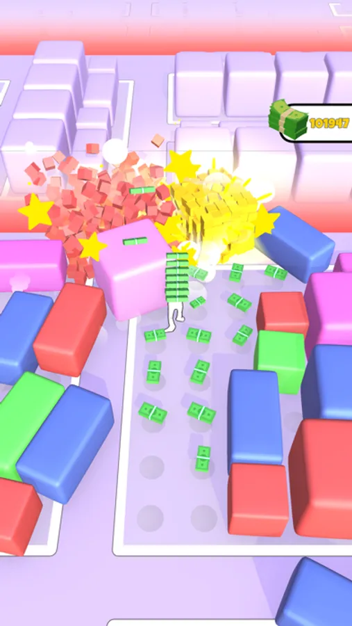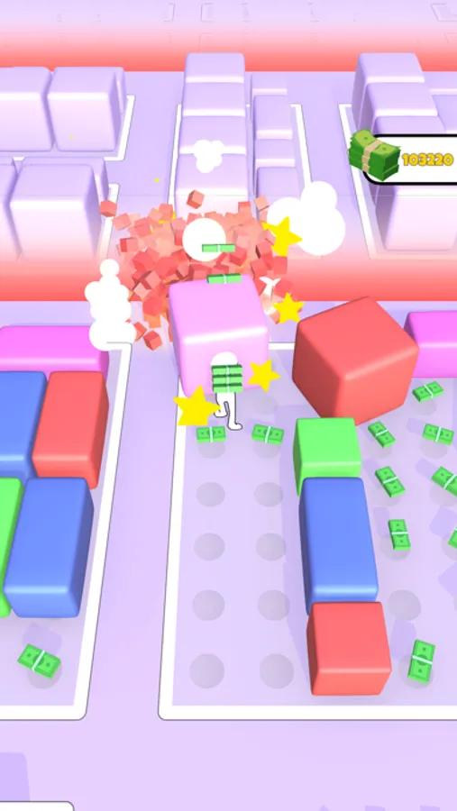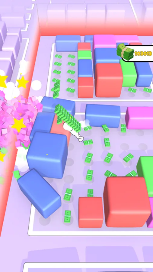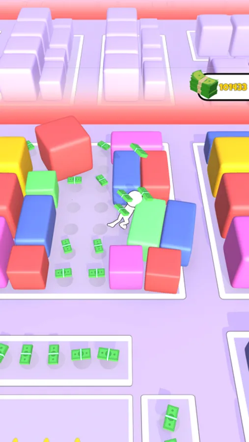Push the boxes from the own fields to outside for having extra area. Then collect moneys on that areas. Attention! No money, No Pushing!