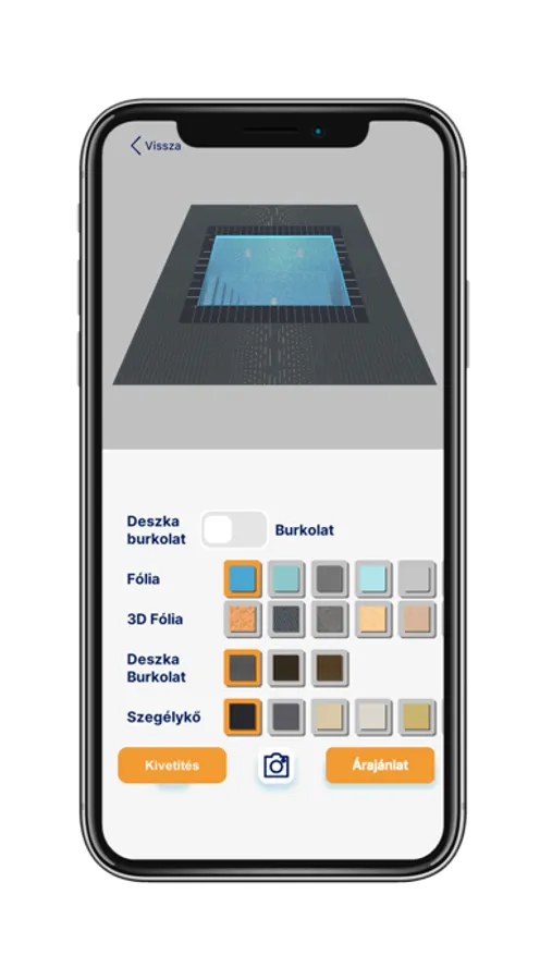 Az applikáció tartalmaz továbbá egy – a medence működtetése során felmerülő - anyagok, valamint lehetséges szolgáltatások megrendelését. Ez az adott termékek és szolgáltatások ismertetése mellett megrendelő felületet biztosít a felhasználó számára.