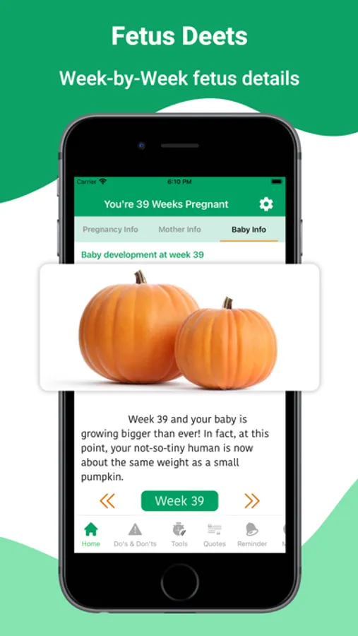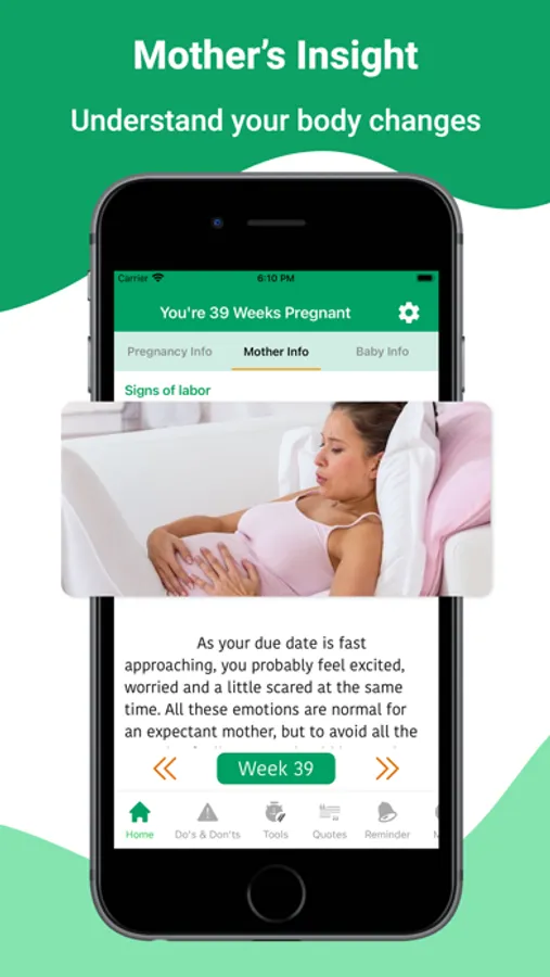 If you're feeling overwhelmed by all the instructions out there, don't worry. Our Pregnancy App & Baby Tracker will help you through your pregnancy, week-by-week, keeping track of your baby's development and helping you to prepare for healthy pregnancy. The Pregnancy App & Baby Tracker content is done with the help of medical experts, lactation consultants, midwives and, of course, parents.