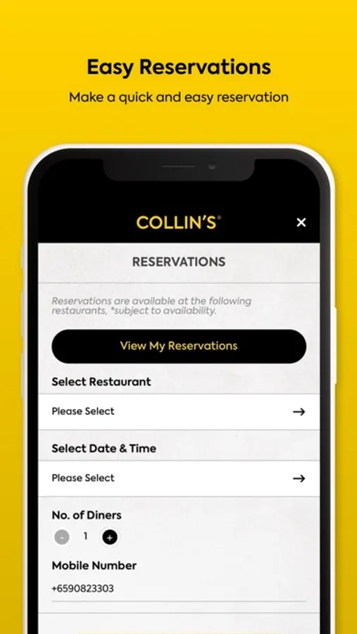 - Order on-the-go, earn COLLIN'S® CRewards-points, and self-collect at your favorite COLLIN'S® restaurant or choose islandwide delivery!