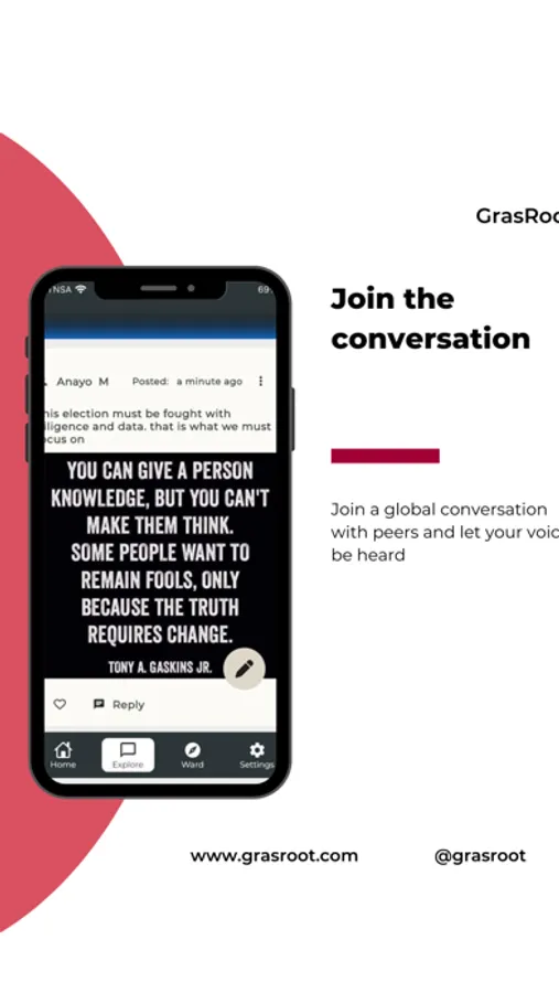 GrasRoot is a Political App for the Masses. It is an app that gives the masses an opportunity to mobilize together as one and to collectively decide their fate as a nation at the polls.
