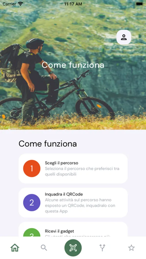 Specifiche attività presenti sul percorso avranno esposto un QRcode, inquadrandolo con la fotocamera ci farai capire che stai utilizzando la APP.