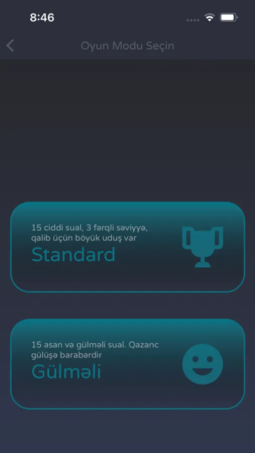 - Standard mod ilə oynayarkən 3 fərqli çətinlik dərəcəsindən 15 sualı cavablandırıb biliyinizi ölçə və ya artıra bilərsiniz.