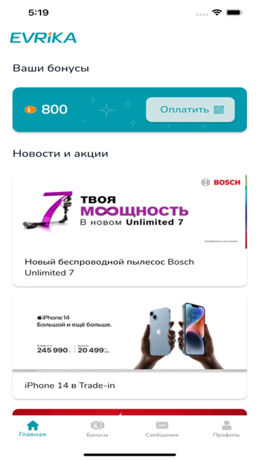 Приложение для клиентов сети гипермаркетов техники и электроники EVRIKA.