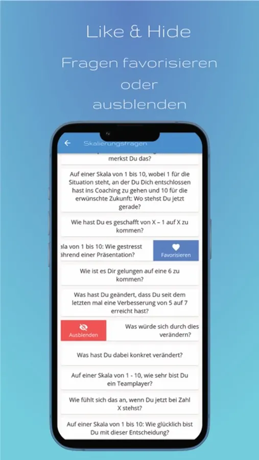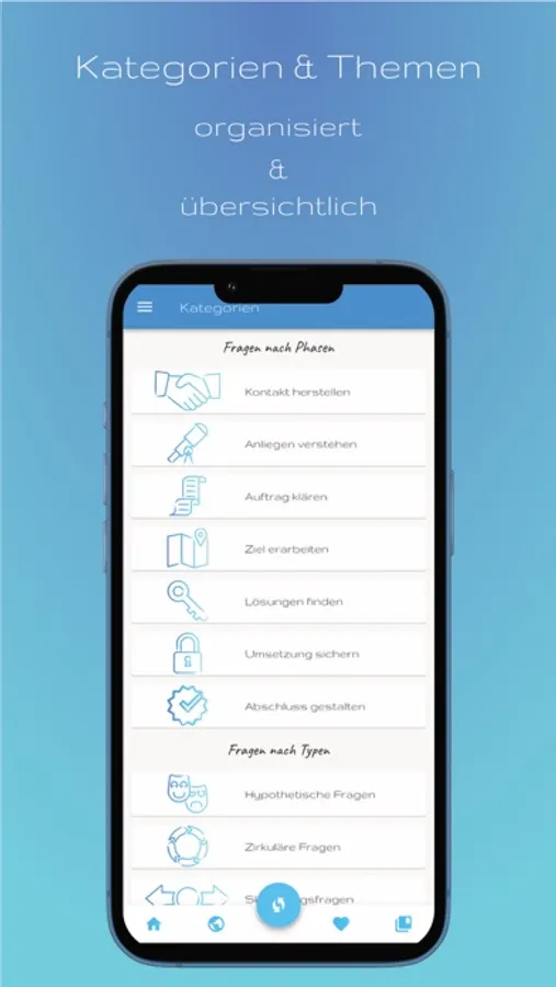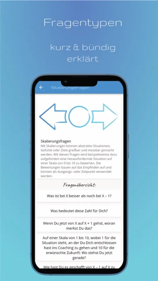 Diese Fragen App bietet eine Übersicht über die verschiedensten systemischen Fragen, von Hypothetischen Fragen über Refraiming Fragen bis hin zu Skalierungsfragen. Ein gutes und ständig wachsendes Fragen-Sammelsorium für alle Beratenden, Trainierenden und Coachenden.