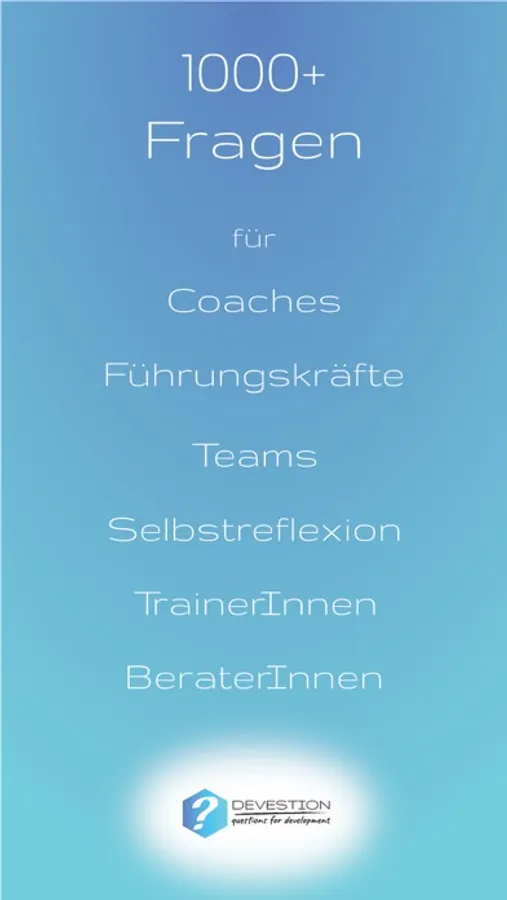 Mit der DEVESTION App gehen Dir nie wieder die Fragen aus. Lass Dich inspirieren, finde die richtige Frage für Deinen aktuellen Coaching- oder Beratungsprozess, frische Dein Wissen über verschiedene Fragetypen auf oder lasse dich von einer zufälligen CheckIn-Frage überraschen.