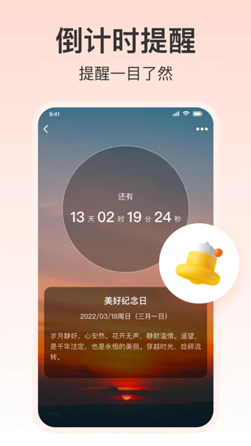 倒数纪念是一款免费且功能强大的时间记录提醒工具,能帮助你更好的管理纪念日、生日、还款日等等重要日子。