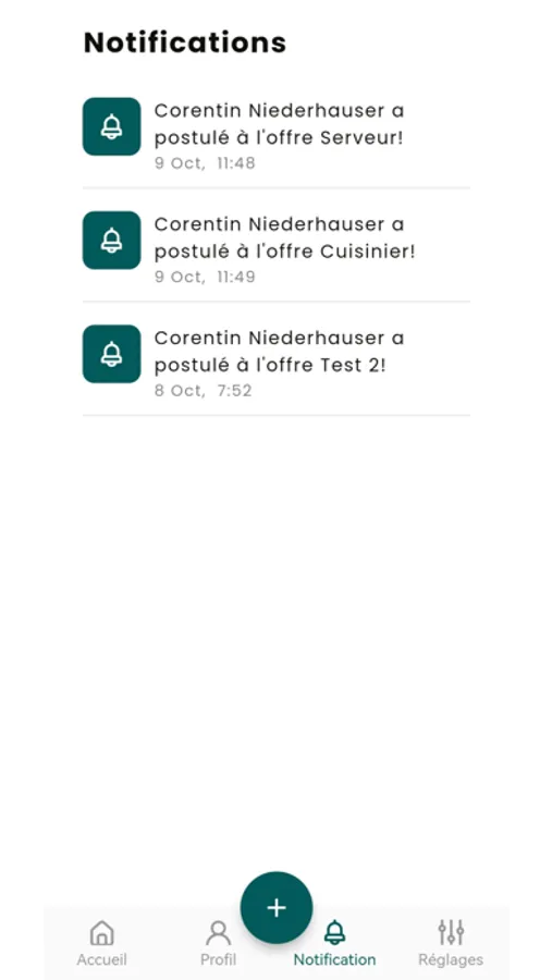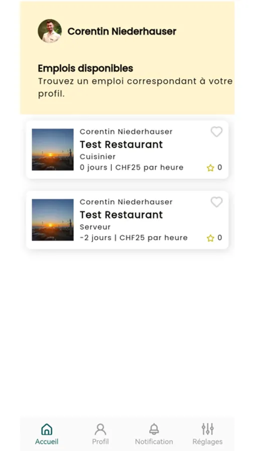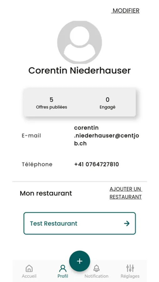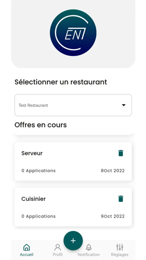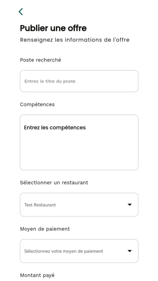 - L’application vous permet en tant que restaurateur d’établir un profil pour un ou plusieurs restaurants et de publier des offres d’emplois occasionnelles lorsque vous êtes en manque de personnel.
