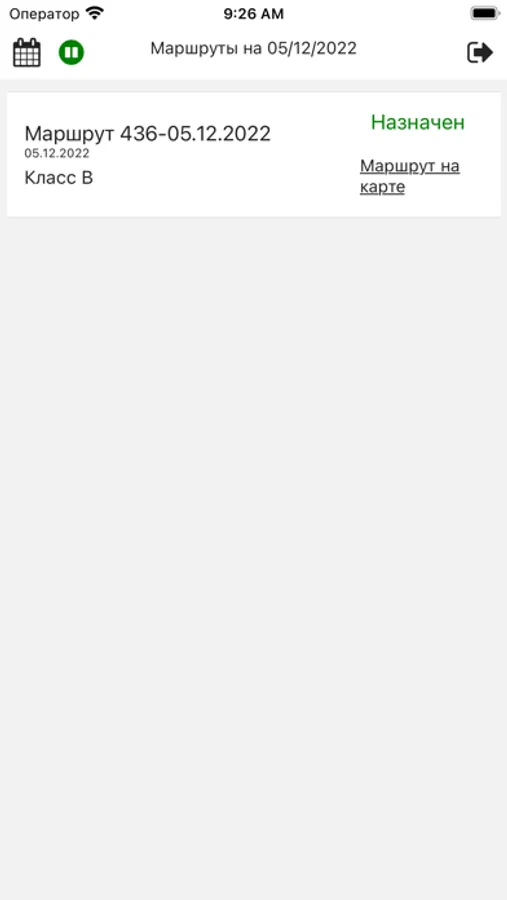 1. Отображение списка назначенных диспетчером маршрутов подлежащих выполнению