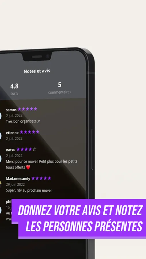Notez-vous et donnez votre avis sur chacun des participants présent aux événements (les avis seront visible sur le profil de chaque utilisateurs).