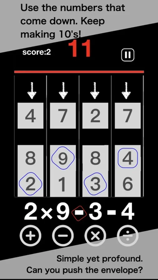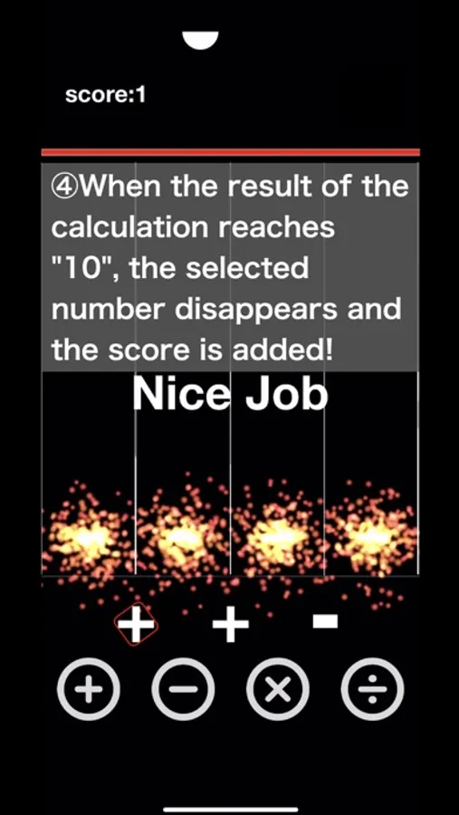 When the result of the calculation reaches 10, the selected box disappears and your score is added at the same time.