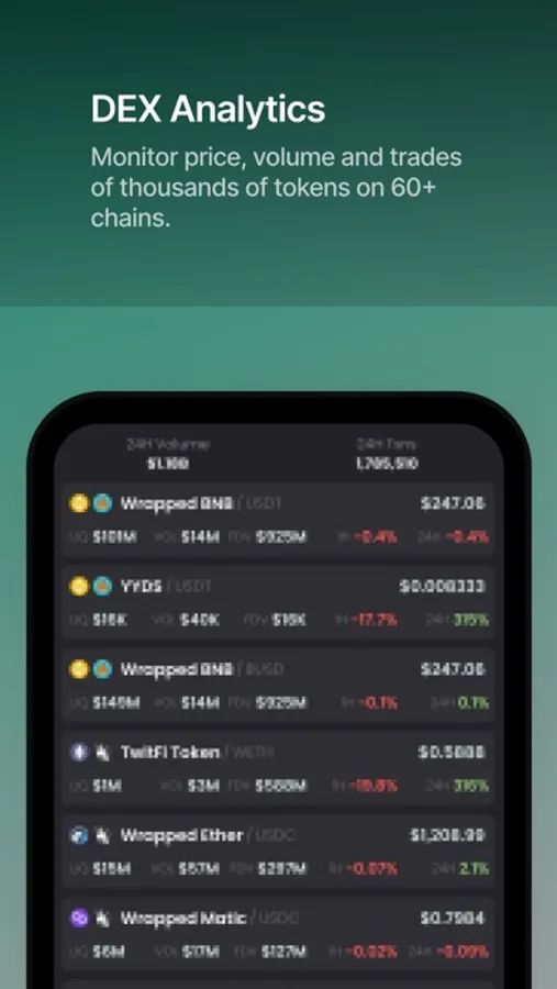 - Support for 60+ chains, hundreds of DEXes and hundreds of thousands of pairs