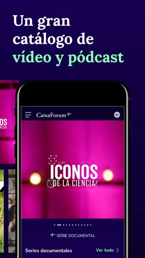 Con CaixaForum+ podrás disfrutar de una gran variedad de contenido audiovisual en diferentes formatos. Desde series documentales, peliculas, conferencias, entrevistas a artistas y a expertos, hasta conciertos, espectáculos y experiencias. Todo ello reunido en una misma plataforma audiovisual, para que puedas disfrutar del mejor contenido cultural y científico.