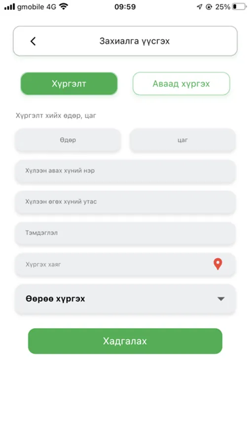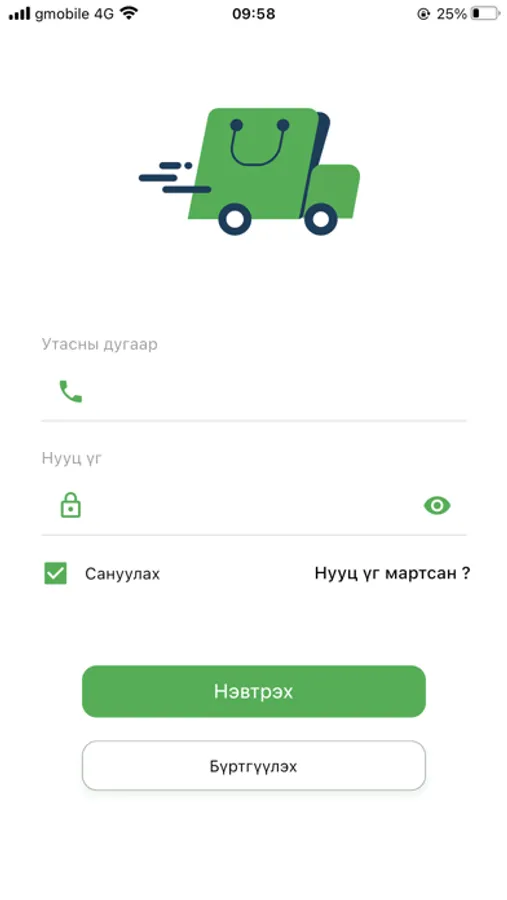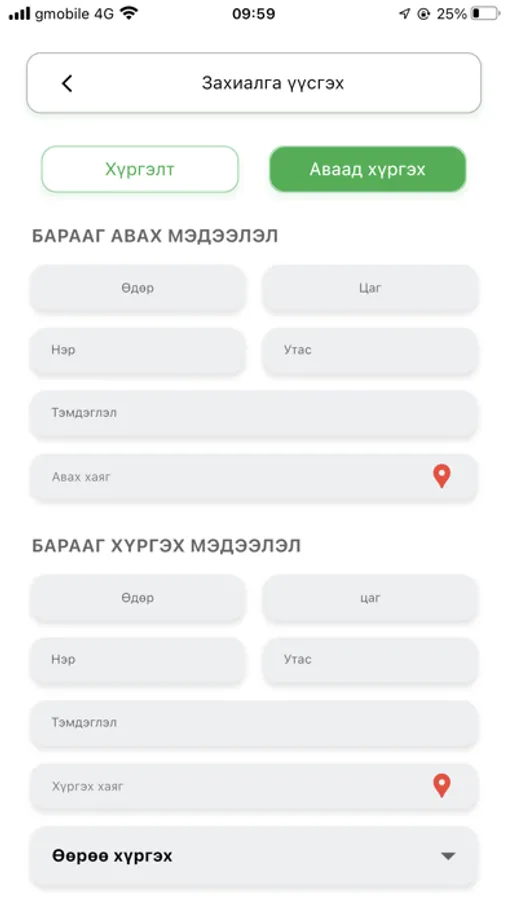 Хялбар хүргэлт эрлэлт. Бүртгэлийн аппликейшн