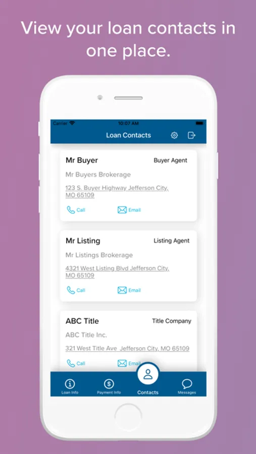 - Contact Info - Your lender, your realtor, and anyone else involved in your mortgage are easy to contact – all via the app.