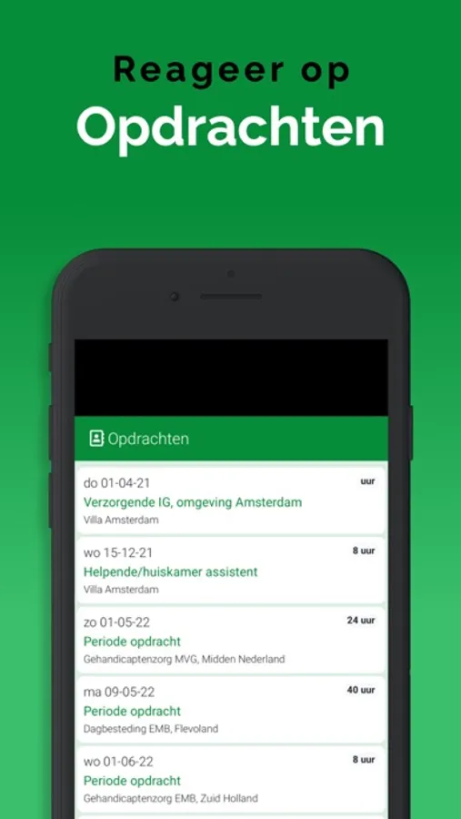 De App is gekoppeld aan het systeem waardoor informatie altijd up-to-date is, via een overzichtelijk dashboard. Bovendien komen belangrijke meldingen, als nieuw beschikbare opdrachten, via een push melding binnen op het apparaat. Zo zie je niets over het hoofd. Ook wijzigingen worden direct zichtbaar, ook in de agenda. Je bent dus altijd op de juiste plaats aanwezig.