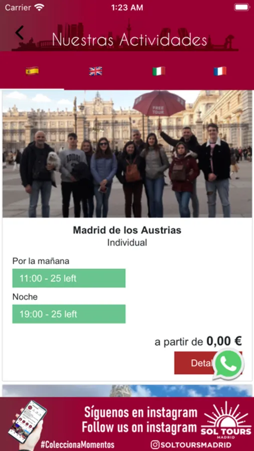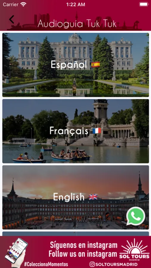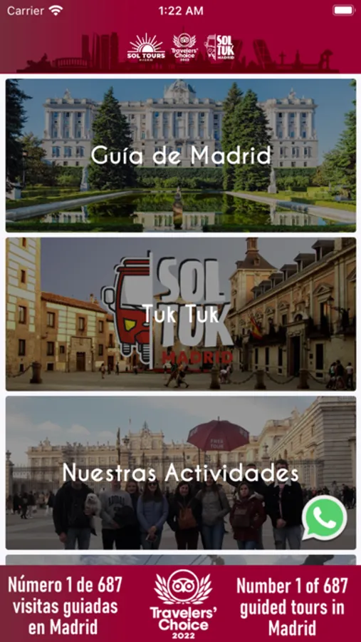 Con nuestra app es muy fácil reservar tu cupo para asistir a cualquiera de nuestros recorridos y experiencias: walking tours por el centro histórico y moderno de Madrid, divertidos paseos en tuk tuk, visitas guiadas a museos, show flamenco, paseos a Toledo, Ávila, Segovia, etc, paseos en segway, bus turístico, pubcrawl y más.