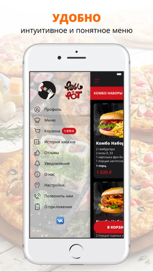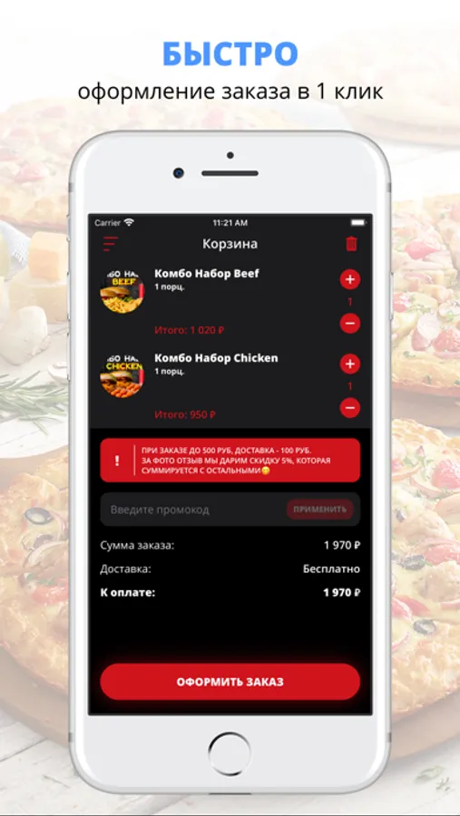 Скачивайте наше приложение, оформляйте заказ и наслаждайтесь любимой едой, где бы Вы ни были! Приятного аппетита!