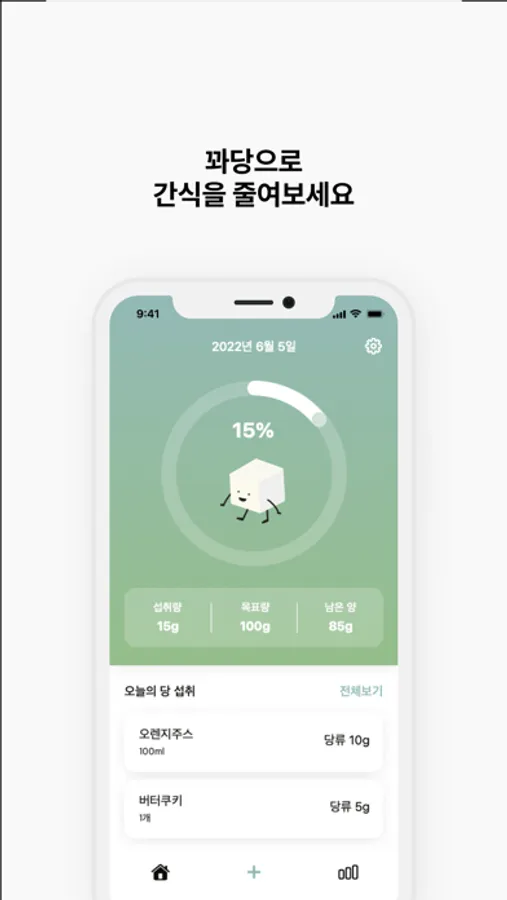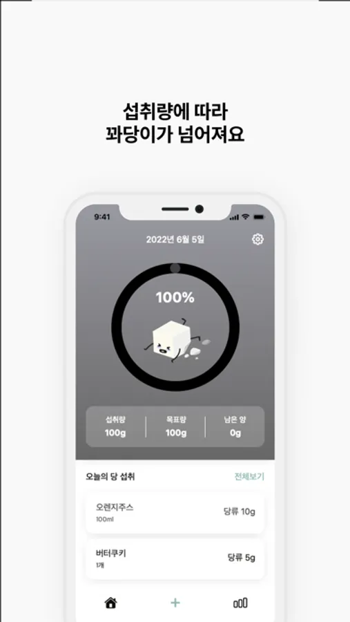 원하는 간식 기준량을 설정하고 간단하게 기록해보세요!
